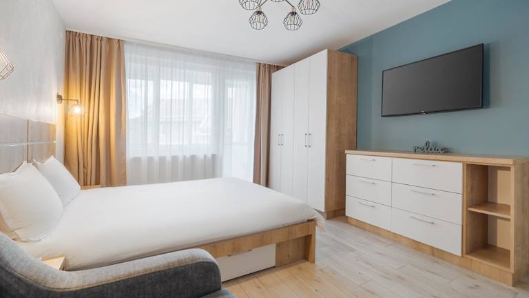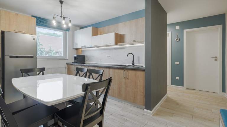 Apartament Aqua Felix ist ein modernes Domizil mit klimatisierter Unterkunft, die über zwei Schlafzimmer, ein Badezimmer sowie eine voll ausgestattete Küche verfügt. Die Ferienwohnung bietet auch einen Balkon mit Gartenblick. Der Privatparkplatz ist vor Ort verfügbar, und Gäste profitieren von kostenlosem Wifi.