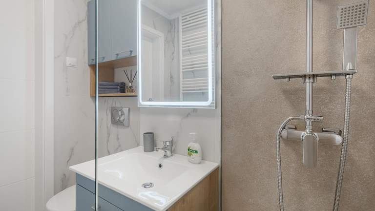 Die Wohnung umfasst zwei Schlafzimmer und ein Badezimmer, ist mit Bettwäsche und Handtüchern ausgestattet und verfügt über einen Flachbild-TV mit Satellitenkanälen sowie einen Essbereich. Klimaanlage und eine private Einrichtung sorgen für Bequemlichkeit.