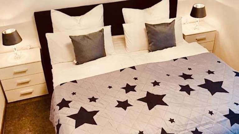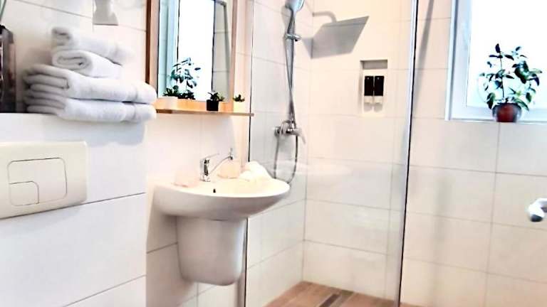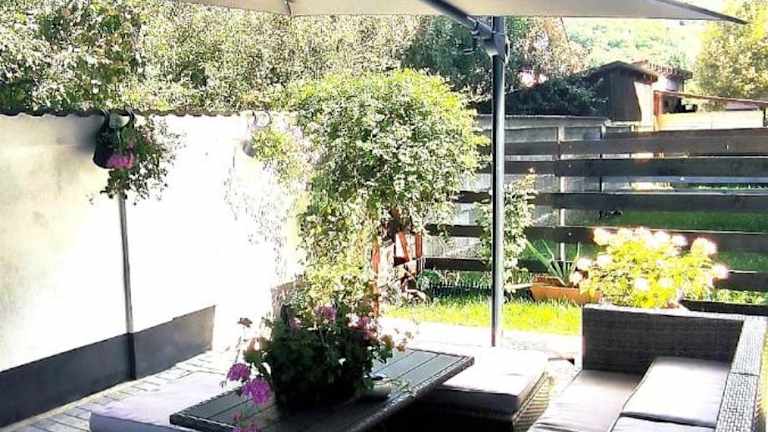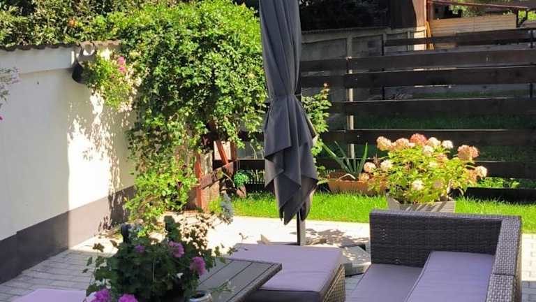 Die Ferienwohnung verfügt über 2 Schlafzimmer, ein Wohnzimmer und eine gut ausgestattete Küche. Ein Badezimmer mit Dusche und Badewanne sowie eine Terrasse mit Gartenblick sind vorhanden. Bettwäsche und Handtücher werden bereitgestellt, und die Ferienwohnung ist schallisoliert. Weiterhin stehen Gartenmöbel bereit.