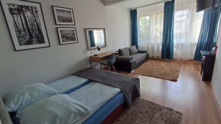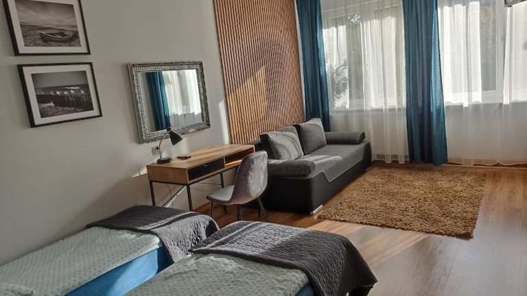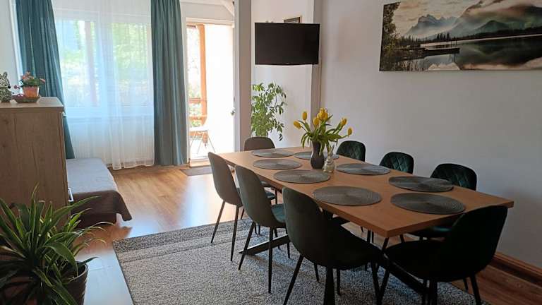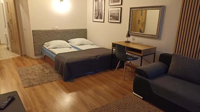 Die Unterkunft befindet sich in der Nähe des Sailors' Village, nur 600 Meter entfernt, sowie etwa 1,8 Kilometer vom Aquapark Tropikana. Der nächstgelegene Flughafen ist der Flughafen Olsztyn-Mazury, gelegen etwa 69 Kilometer von der Unterkunft entfernt.
