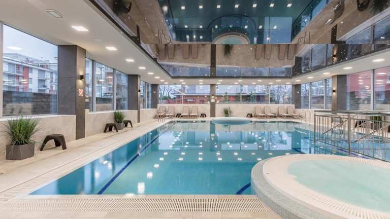 Apartament Holiday 8/25 ist eine moderne Unterkunft, die zahlreiche Annehmlichkeiten für Familien und Einzelgäste bereitstellt, darunter kostenloses Wifi, einen Kinderspielplatz und ein Restaurant. Es gibt eine Terrasse, einen Innenpool, Fitnessmöglichkeiten sowie eine 24-Stunden-Rezeption und einen kostenlosen Privatparkplatz.