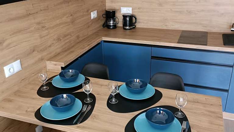 Das Restaurant vor Ort bietet Verpflegung. In der Ferienwohnung befindet sich eine gut ausgestattete Küchenzeile mit Kühlschrank, Mikrowelle und Herdplatte.
