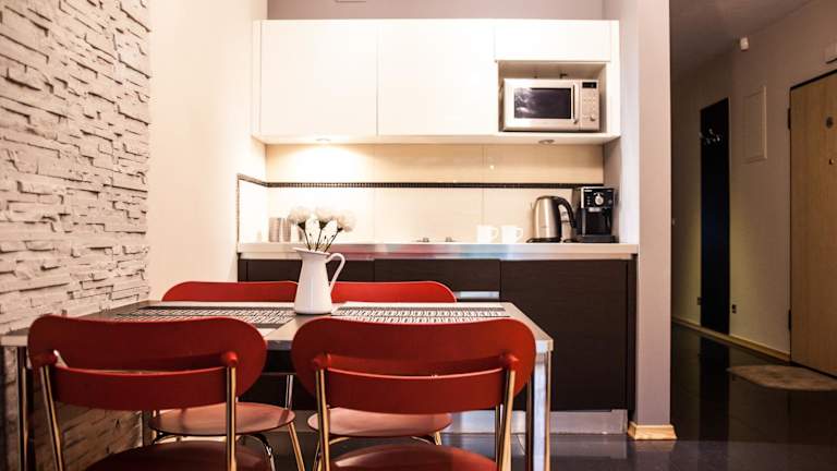 Das Apartment ist mit einem Bügeleisen/-brett, einem CD-Player sowie einem Wasserkocher und einem Kühlschrank ausgestattet. Der Essbereich sowie ein eigenes Bad mit Dusche und Haartrockner runden die Ausstattung ab. Die Unterkunft bietet zudem Nichtraucherzimmer und familienfreundliche Optionen.