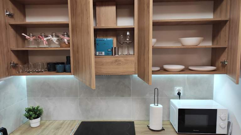 Die Ferienwohnung verfügt über ein Schlafzimmer und ein Wohnzimmer, das mit einem Flachbild-TV mit Kabelkanälen ausgestattet ist. Zudem gibt es eine voll ausgestattete Küchenzeile mit Kühlschrank und Geschirrspüler sowie ein Badezimmer mit Badewanne oder Dusche. Handtücher und Bettwäsche werden zur Verfügung gestellt.