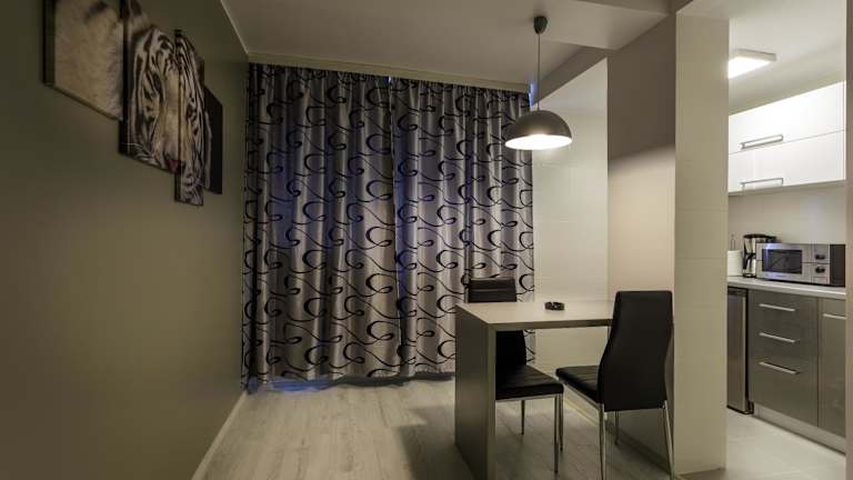 Das Apartment beinhaltet eine voll ausgestattete Küche mit Kühlschrank, Mikrowelle, Herdplatte und Kaffeemaschine. Zudem gibt es einen Flachbild-TV mit Satellitenkanälen, ein eigenes Badezimmer mit Dusche sowie kostenfreie Pflegeprodukte. Die Räume sind schallisoliert und klimatisiert.