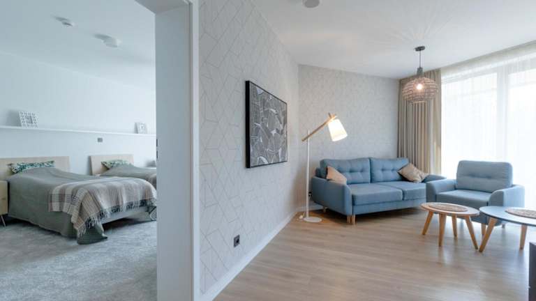 Die Ferienwohnung besteht aus 2 Schlafzimmern, einem Wohnzimmer und einer voll ausgestatteten Küche mit Kühlschrank und Kaffeemaschine. Zur weiteren Ausstattung gehören 2 Badezimmer mit Dusche und Haartrockner. Handtücher und Bettwäsche werden bereitgestellt.