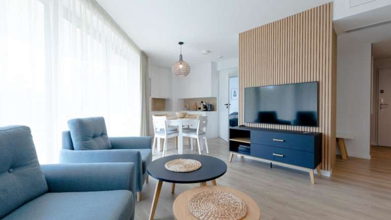 Die Unterkunft Apartament Pinea de Lux by Major Domus bietet eine Ferienwohnung mit Meerblick und einem Balkon. Sie verfügt zudem über eine Terrasse sowie einen kostenlosen Privatparkplatz.