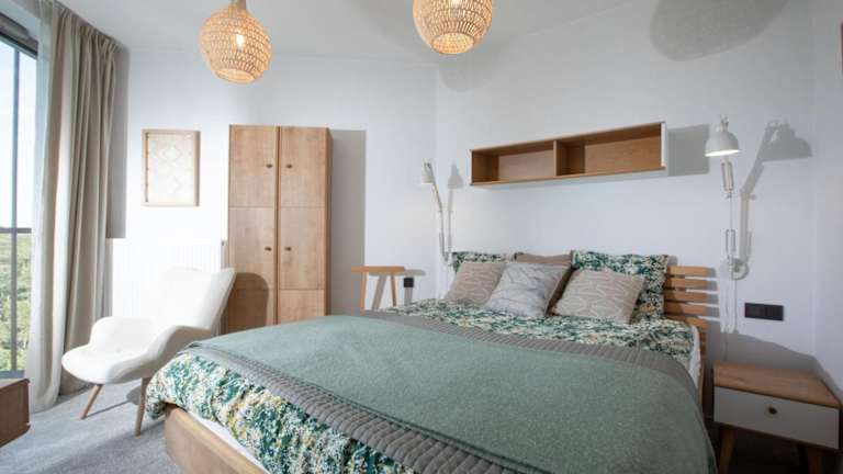 Die Ferienwohnung verfügt über ein Schlafzimmer sowie ein Wohnzimmer und ist mit einem Flachbild-TV ausgestattet. Die gut ausgestattete Küche bietet einen Kühlschrank und einen Geschirrspüler. Das Badezimmer ist mit einer Dusche ausgestattet. Handtücher und Bettwäsche werden bereitgestellt.
