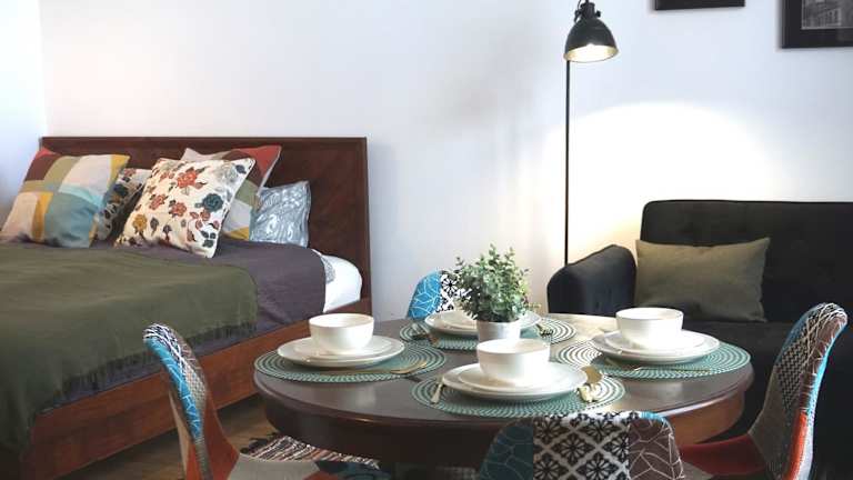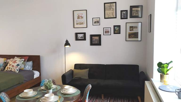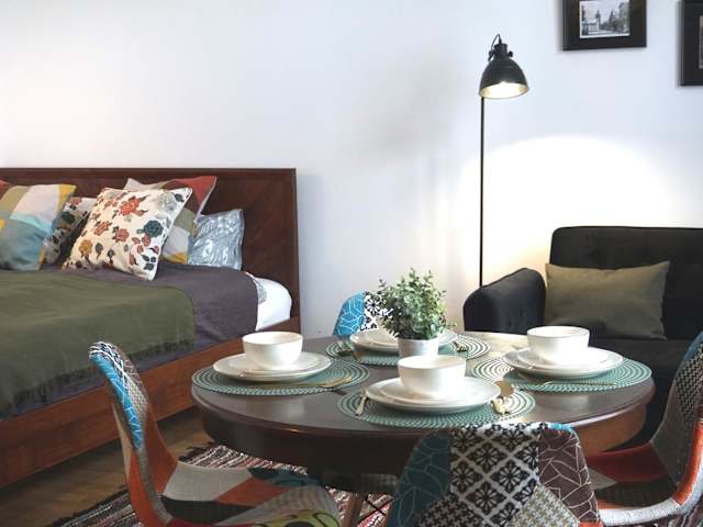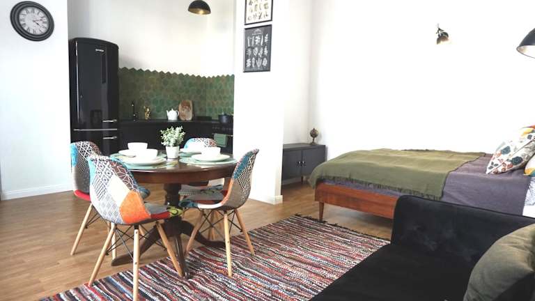 Die Ferienwohnung besteht aus einem Schlafzimmer, einem Wohnzimmer und einer voll ausgestatteten Küchenzeile mit Kühlschrank und Kaffeemaschine. Das Badezimmer verfügt über eine Dusche und kostenloser Pflegeprodukte. Handtücher und Bettwäsche werden zur Verfügung gestellt.