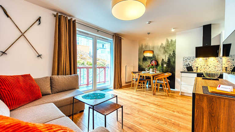 Das Apartament Przy Wyciągu 1 - 5D Apartamenty bietet eine heimelige Atmosphäre mit einem Balkon sowie kostenlosem Privatparkplatz und kostenlosem WLAN.