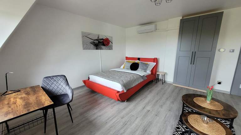 Die Ferienwohnung bietet einen Stadtblick, einen Satelliten-Flachbild-TV sowie eine gut ausgestattete Küche mit Kühlschrank, Geschirrspüler und Ofen. Es stehen ein Badezimmer mit Dusche und Haartrockner zur Verfügung. WLAN ist kostenlos und ein Privatparkplatz ist direkt vor Ort verfügbar.