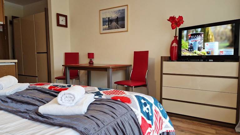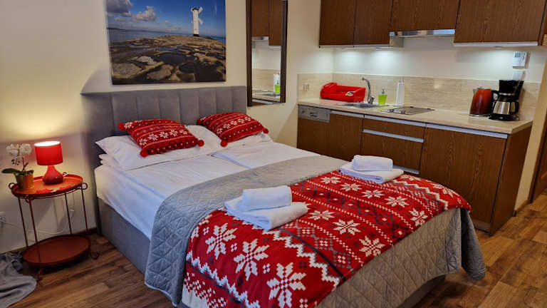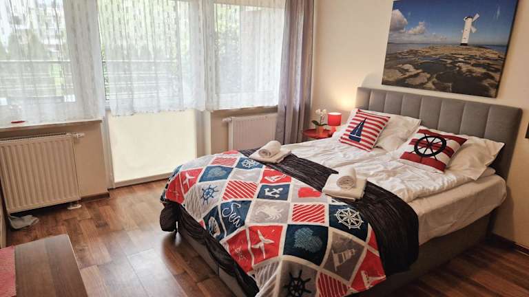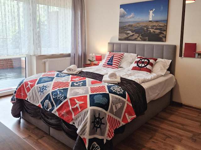 Die Unterkunft befindet sich direkt am Strand in Świnoujście, in der Nähe des Baltic Park Molo Aquapark und des Zdrojowy-Parks. Der Strand von Swinoujście ist nur 500 m entfernt. Der Bahnhof Swinemünde liegt 8,6 km entfernt, während die Seebrücke Ahlbeck in einer Entfernung von 7,1 km erreichbar ist.