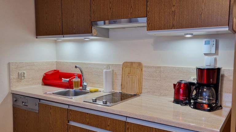 Die Ferienwohnung umfasst ein Schlafzimmer, ein Badezimmer mit Dusche und eine gut ausgestattete Küchenzeile mit Kühlschrank und Geschirrspüler. Zu den Annehmlichkeiten zählen ein Flachbild-TV mit Satellitenkanälen sowie Handtücher und Bettwäsche, die zur Verfügung gestellt werden.
