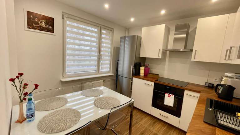 Apartament Weronika bietet eine heimelige Atmosphäre mit einem Balkon und Blick auf den Garten. Die Ferienwohnung wird von einem privaten Gastgeber geführt und erlaubt keine Junggesellen- oder ähnliche Feiern.