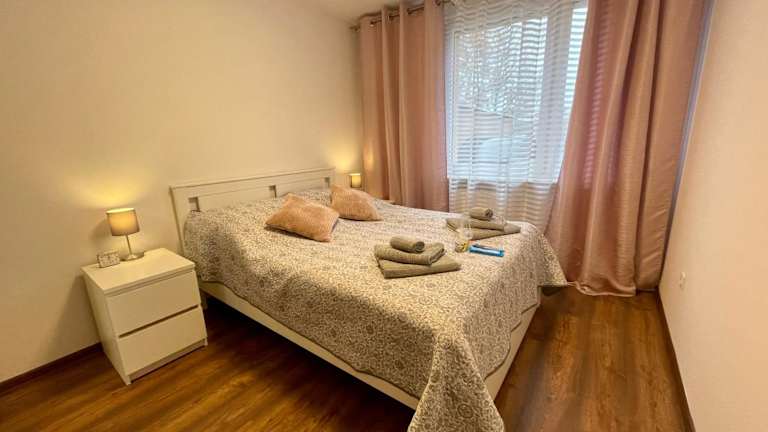 Die Unterkunft umfasst ein Schlafzimmer, ein Wohnzimmer, einen Flachbild-TV und eine gut ausgestattete Küche mit Kühlschrank und Ofen. Ein Badezimmer mit Dusche sowie Handtücher und Bettwäsche sind vorhanden.