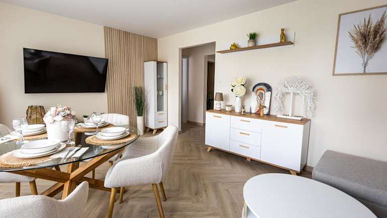 Apartament Winogronowy bietet Übernachtungsmöglichkeiten in einer Ferienwohnung mit drei Schlafzimmern, die zusätzlich über einen Balkon verfügt. Die Unterkunft ist spezifisch auf Nichtraucher ausgelegt und erlaubt keine Feiern wie Junggesellenabschiede. Zudem müssen Gäste beim Check-in mindestens 18 Jahre alt sein. Ein Bereich zur Identifikation von Minderjährigen wird sichergestellt, wenn Kinder anwesend sind.