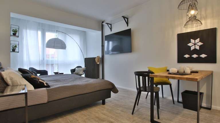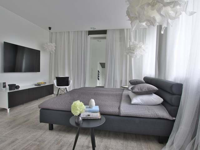 Die Ferienwohnung verfügt über ein Schlafzimmer, eine Küche mit einem Kühlschrank und einem Geschirrspüler, eine Waschmaschine sowie ein Badezimmer mit einem Haartrockner. Ein Flachbild-TV ist ebenfalls vorhanden.