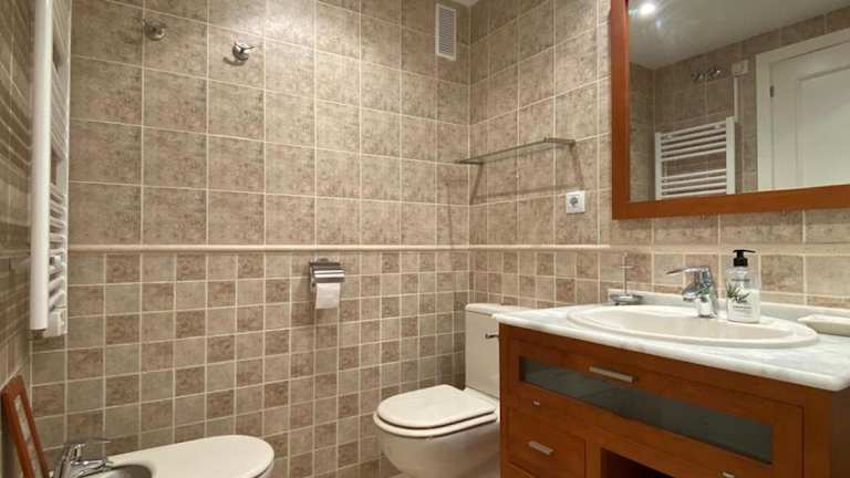 Die Ferienwohnung verfügt über zwei Schlafzimmer, ein Wohnzimmer sowie eine voll ausgestattete Küche mit Kühlschrank und Kaffeemaschine. Zudem stehen zwei Badezimmer mit Bidet und Dusche zur Verfügung. Handtücher und Bettwäsche werden bereitgestellt. Die Unterkunft ist klimatisiert und bietet eine Terrasse.