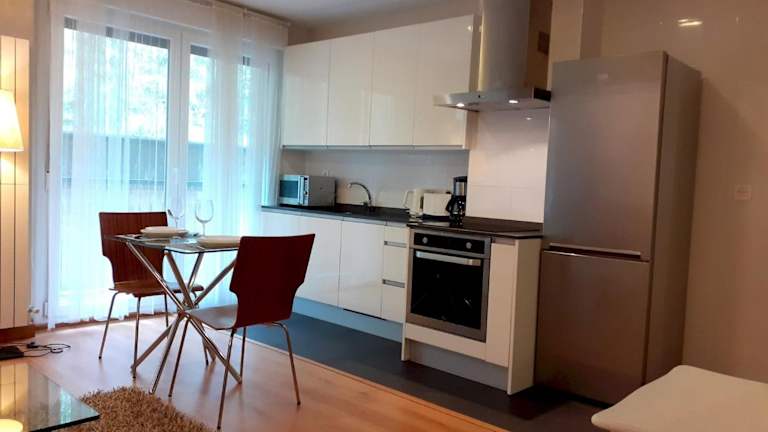 Die Ferienwohnung verfügt über eine Küche mit einem Kühlschrank und einem Geschirrspüler, wo die Gäste ihre eigenen Mahlzeiten zubereiten können. Handtücher und Bettwäsche werden zur Verfügung gestellt.