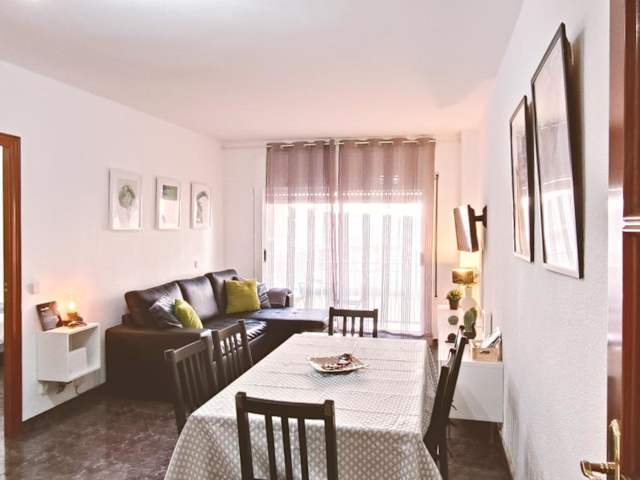 Die Unterkunft Apartamento Centric para 6 cerca de a playa y el tren bietet Übernachtungsmöglichkeiten mit einem Balkon und kostenlosem Wifi. Sie verfügt über 4 Schlafzimmer sowie eine Küche, die mit einem Kühlschrank und einem Ofen ausgestattet ist, und 2 Badezimmer mit einer Badewanne. Handtücher und Bettwäsche werden bereitgestellt. Vor Ort ist eine Terrasse vorhanden.