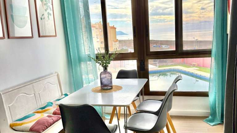 Das Apartamento Con Vistas al Mar bietet eine heimelige Atmosphäre mit einem Balkon und Blick auf die Berge sowie das Meer. Die Unterkunft verfügt über einen Swimmingpool und einen Garten, was zur entspannten Ferienatmosphäre beiträgt. Kostenloses Wifi steht zur Verfügung.