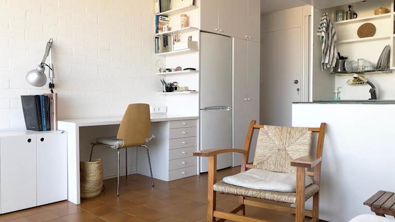 Die Wohnung verfügt über ein Schlafzimmer, ein Wohnzimmer und eine voll ausgestattete Küche mit Kühlschrank, Wasserkocher und Kaffeemaschine. Das Badezimmer hat eine Dusche sowie einen Haartrockner. Handtücher und Bettwäsche werden bereitgestellt. Die Unterkunft ist Nichtraucherzone und umfasst heimelige, helle Räume.