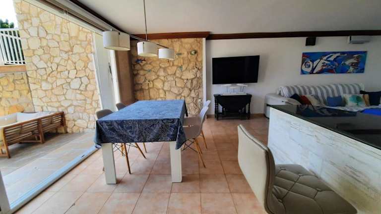 Die Ferienwohnung verfügt über 1 Schlafzimmer, 1 Badezimmer, Bettwäsche, Handtücher und einen Flachbild-TV mit Satellitenkanälen. Die voll ausgestattete Küche bietet alles Notwendige für die Selbstversorgung. Zudem gibt es einen Essbereich sowie eine Terrasse mit Meerblick.