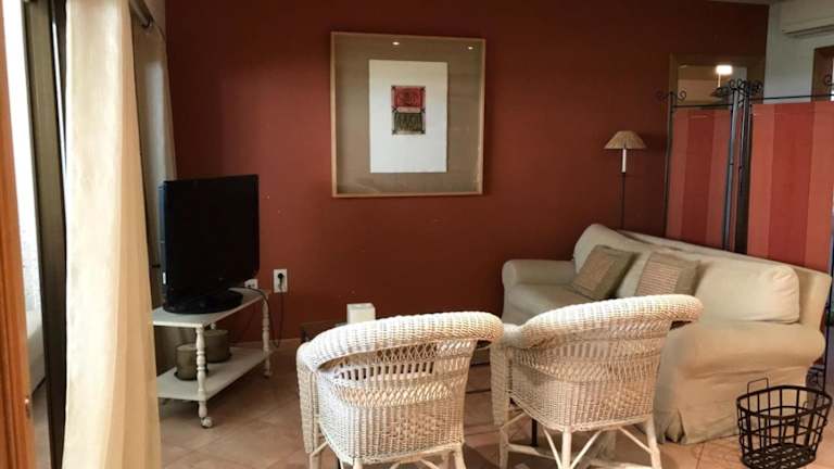 Die klimatisierte Ferienwohnung umfasst zwei Schlafzimmer, eine Küche mit Kühlschrank und Ofen, sowie einen Flachbild-TV und einen Sitzbereich. Das Badezimmer ist mit einem Bidet ausgestattet. Handtücher und Bettwäsche werden zur Verfügung gestellt.