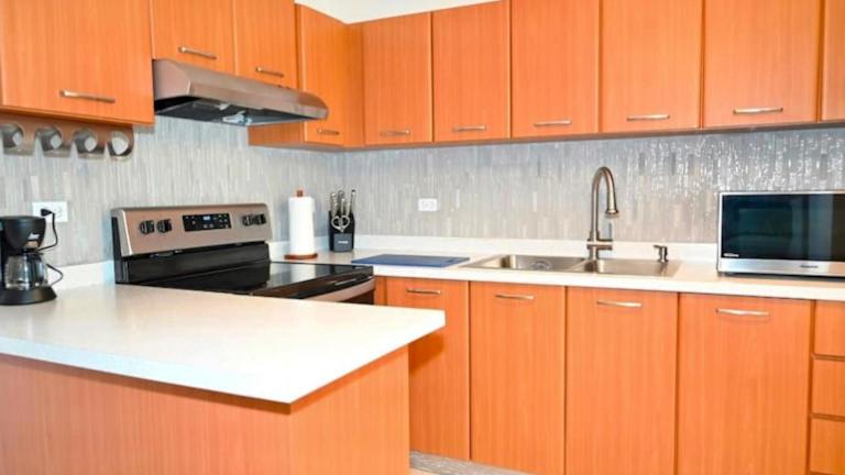 Das klimatisierte Apartment verfügt über 2 separate Schlafzimmer, eine voll ausgestattete Küche mit Geschirrspüler und Mikrowelle sowie 2 Badezimmer. Ein TV steht Ihnen ebenfalls zur Verfügung. Die moderne und komfortable Ausstattung des Apartments sorgt dafür, dass Sie sich wie zu Hause fühlen. Kostenloses WLAN ist ebenfalls vorhanden.