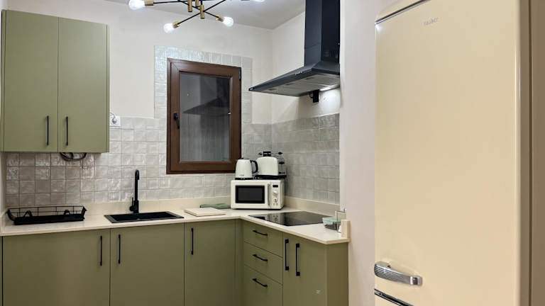In der Ferienwohnung steht eine gut ausgestattete Küche zur Verfügung, in der Gäste ihre eigenen Mahlzeiten zubereiten können. Frühstücks-Behälter zum Mitnehmen sind ebenfalls erhältlich.