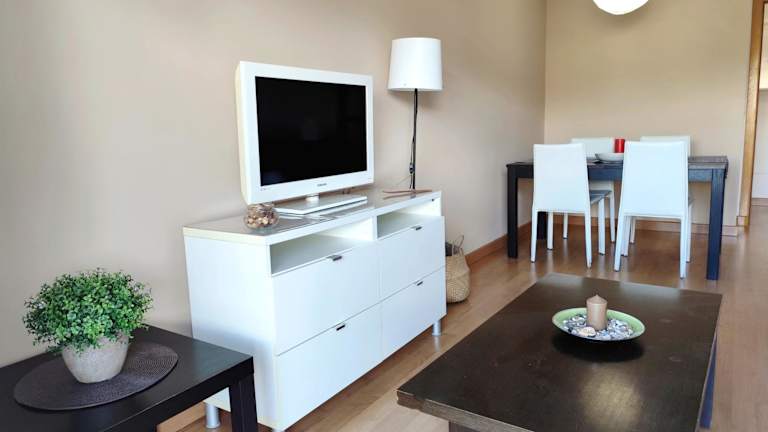 Die Ferienwohnung ist mit Klimaanlage, zwei Schlafzimmern, einem TV, einem Essbereich sowie einer Küche ausgestattet, die einen Kühlschrank und einen Geschirrspüler beinhaltet. Handtücher und Bettwäsche werden bereitgestellt.