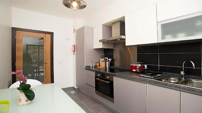 Die Ferienwohnung verfügt über zwei Schlafzimmer und zwei Badezimmer. Zur Ausstattung gehören Bettwäsche, Handtücher, ein TV mit Satellitenkanälen sowie eine voll ausgestattete Küche. Zudem gibt es einen Balkon mit Gartenblick.