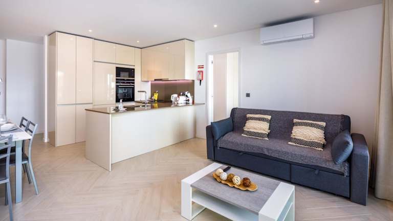 Die klimatisierte Ferienwohnung umfasst 2 Schlafzimmer, ein Wohnzimmer sowie eine voll ausgestattete Küche mit Kühlschrank und Kaffeemaschine. Des Weiteren sind 2 Badezimmer mit Bidet und Dusche vorhanden. Handtücher und Bettwäsche werden zur Verfügung gestellt.