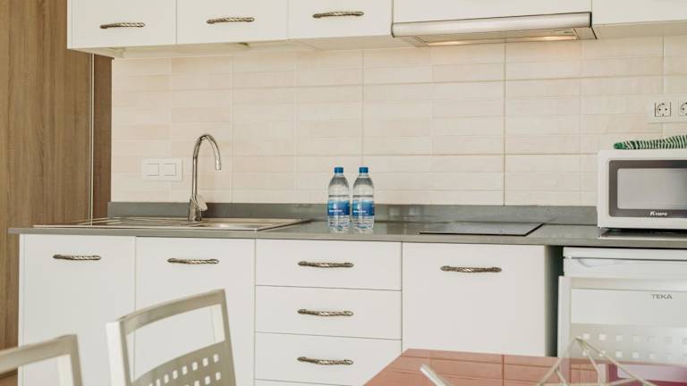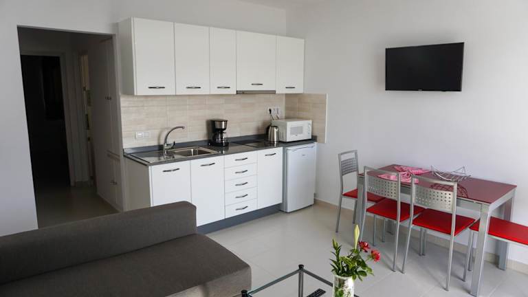 Die Ferienwohnung verfügt über eine Küche, die mit einem Kühlschrank, einer Mikrowelle und einer Kaffeemaschine ausgestattet ist. Eine Bar ist ebenfalls vorhanden, in der Getränke angeboten werden.