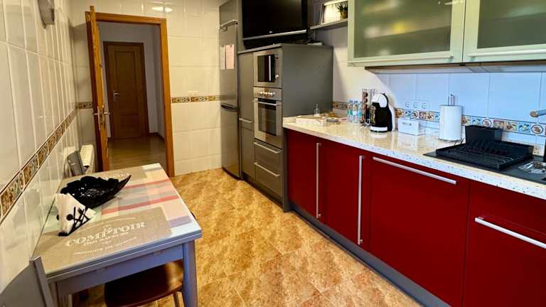 Die Ferienwohnung verfügt über eine voll ausgestattete Küche mit Kühlschrank und Kaffeemaschine, was eine praktische Verpflegung ermöglicht. Keine weiteren Informationen zu Essensmöglichkeiten vorhanden.