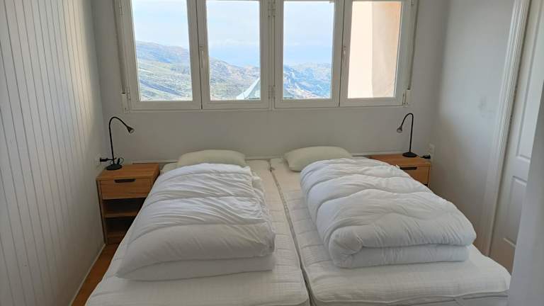 Die Ferienwohnung umfasst zwei Schlafzimmer, ein Wohnzimmer und ein Badezimmer mit Dusche. Zur Ausstattung gehören ein Flachbild-TV sowie eine gut eingerichtete Küche mit Kühlschrank und Geschirrspüler. Handtücher und Bettwäsche werden bereitgestellt. Von der Terrasse aus geniesst man einen schönen Bergblick.