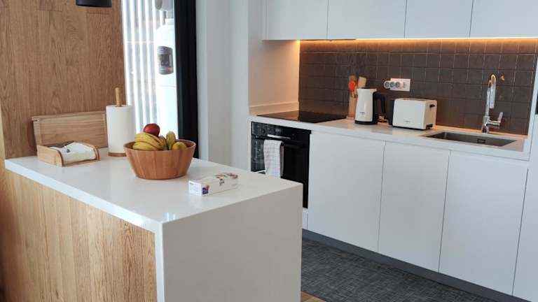 Die Ferienwohnung verfügt über 3 separate Schlafzimmer, eine voll ausgestattete Küche und einen Flachbild-TV.