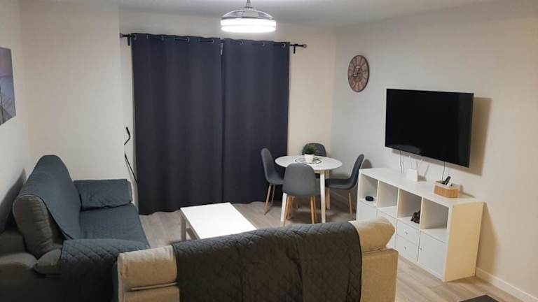 Die Ferienwohnung umfasst zwei Schlafzimmer, ein Wohnzimmer sowie eine gut ausgestattete Küche, die mit einem Kühlschrank und einem Geschirrspüler ausgestattet ist. Zudem steht eine Terrasse zur Verfügung. Handtücher und Bettwäsche werden bereitgestellt.