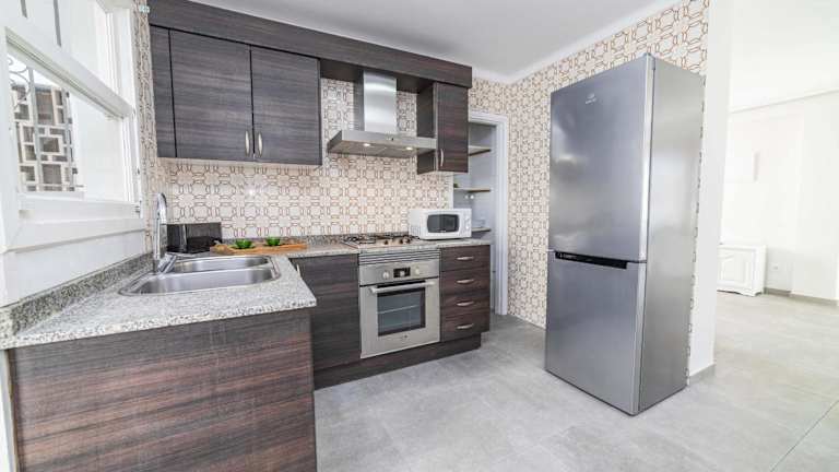 Die Ferienwohnung verfügt über 3 Schlafzimmer, 2 Badezimmer, Bettwäsche, Handtücher, einen TV, eine voll ausgestattete Küche sowie eine Terrasse mit Meerblick.
