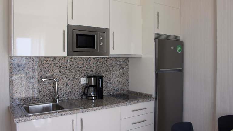 Jedes Apartment ist mit einem TV sowie einer Küche ausgestattet, die über eine Kaffeemaschine, ein Cerankochfeld, eine Mikrowelle und einen Kühlschrank verfügt. Die Apartments bieten entweder einen schönen Meerblick oder eine ruhige Aussicht auf eine Fussgängerzone neben der Strandpromenade.