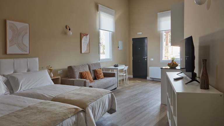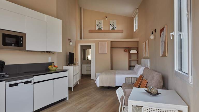 Die Unterkunft besteht aus einem Schlafzimmer, einem Wohnzimmer und einer voll ausgestatteten Küche mit Kühlschrank und Kaffeemaschine. Ein überdachtes Badezimmer mit Dusche und kostenlosen Pflegeprodukten ist ebenfalls vorhanden. Handtücher und Bettwäsche werden zur Verfügung gestellt.