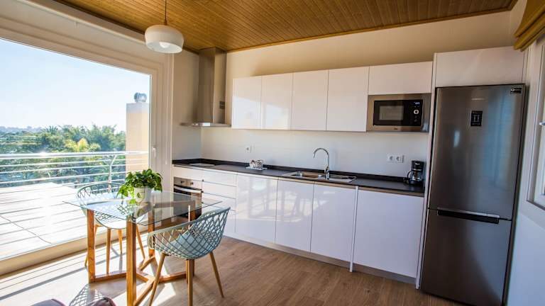 Die modern eingerichteten Apartments sind klimatisiert und verfügen über einen Flachbildfernseher sowie kostenloses Wifi. Jedes Apartment hat zudem eine Terrasse, die einen schönen Blick auf den Garten bietet. Die Zimmer sind schalldicht, was eine ruhige Nachtruhe gewährleistet. Es erfolgt eine Reinigung alle 3-4 Tage bei Aufenthalten von 6 Nächten oder länger, wobei Bettwäsche und Handtücher am Reinigungstag gewechselt werden.