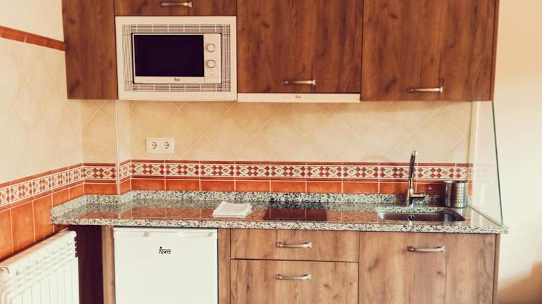 In den Apartamentos steht eine voll ausgestattete Küche zur Verfügung, die mit einem Kühlschrank, einer Mikrowelle, einer Herdplatte, einem Toaster und einer Kaffeemaschine ausgestattet ist. Die Gäste können ihre Mahlzeiten in der eigenen Küche zubereiten.
