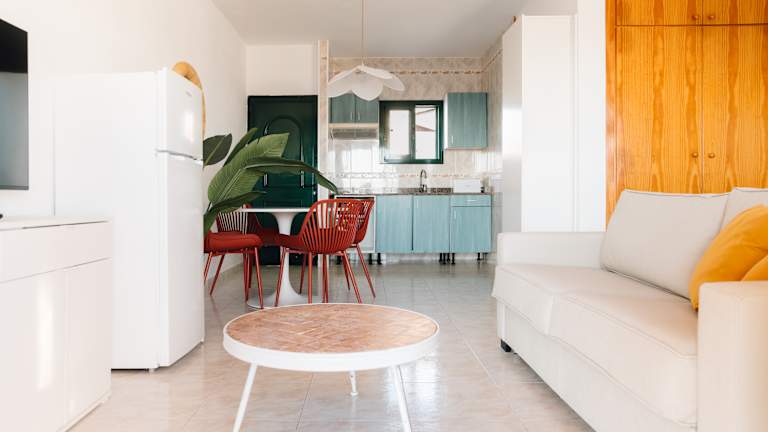 Im Apartamentos Moon Dreams Cabo Baños können Sie Ihre eigenen Mahlzeiten zubereiten, da die Studios über eine Küchenzeile verfügen.