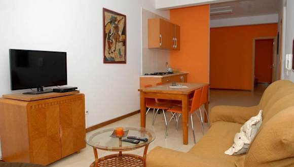 Die Apartamentos Santiago - Praia sind klimatisierte Unterkünfte zur Selbstverpflegung, die über eine komplette Küche mit einer Mikrowelle und einem Kühlschrank verfügen. Die Unterkunft bietet darüber hinaus eine Terrasse, eine Bar sowie eine Snackbar und ist darauf ausgelegt, den Gästen einen angenehmen Aufenthalt zu ermöglichen.