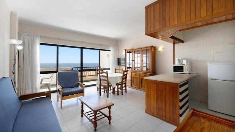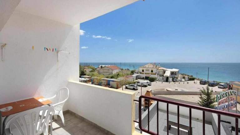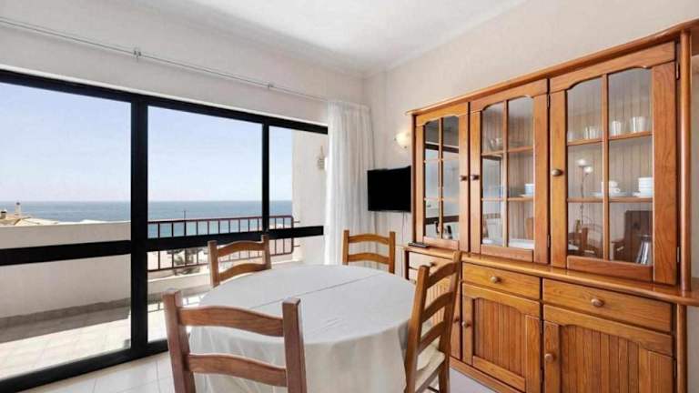 Apartamentos Torre da Rocha frente ao mar bietet eine gemütliche Ferienwohnung mit Blick auf das Meer, einem Balkon und einer Küchenzeile. Die Ferienwohnung ist ideal gelegen für einen erholsamen Aufenthalt am Strand.