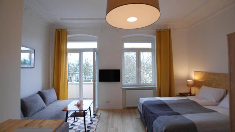 Apartamenty 21 bietet kostenloses WLAN und eine voll ausgestattete Küchenzeile. Jedes Apartment verfügt über einen Flachbild-TV sowie ein eigenes Badezimmer mit Dusche. Die Unterkunft legt Wert auf die Einhaltung von Standards zum Schutz von Minderjährigen und erlaubt keine Feiern wie Junggesellenabschiede. Der nächstgelegene Flughafen ist der Flughafen Stettin-Goleniów, 46 km entfernt.