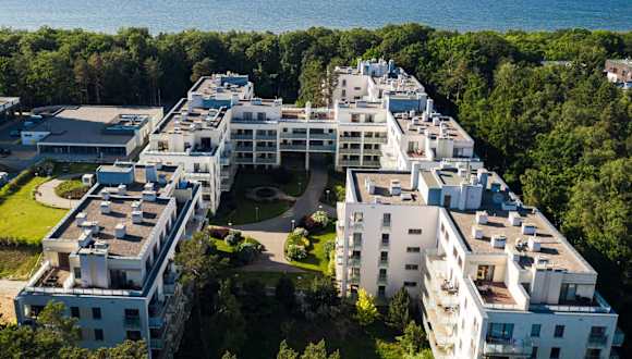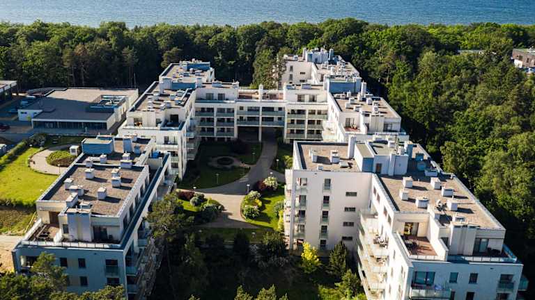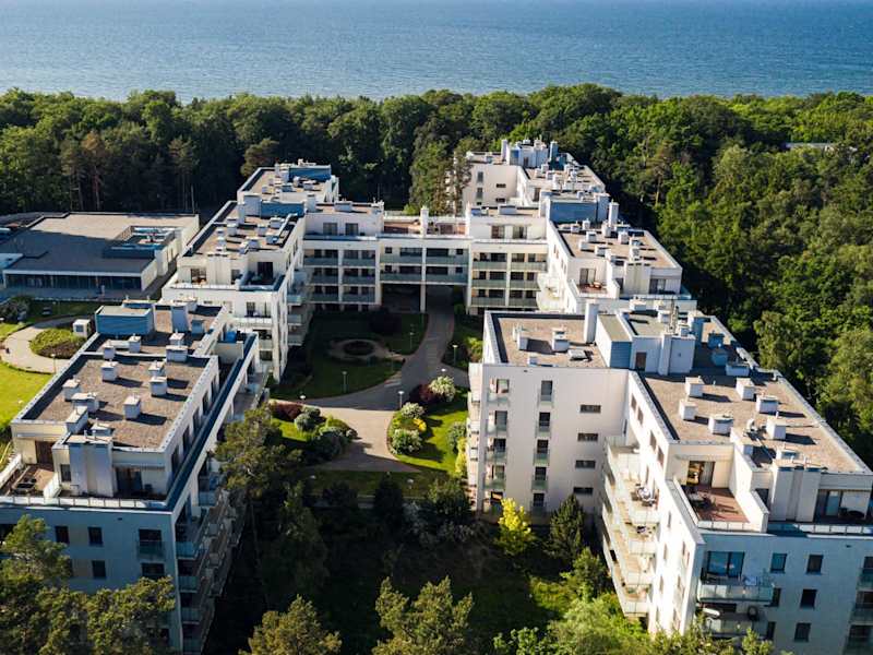 Das Apartamenty Visito - Aquamarina bietet ein modernes Apartment in einer ruhigen, grünen Umgebung. Es ist Teil einer Wohnanlage und bietet neben modernen Annehmlichkeiten auch eine sichere Atmosphäre und kostenloses Parken an.