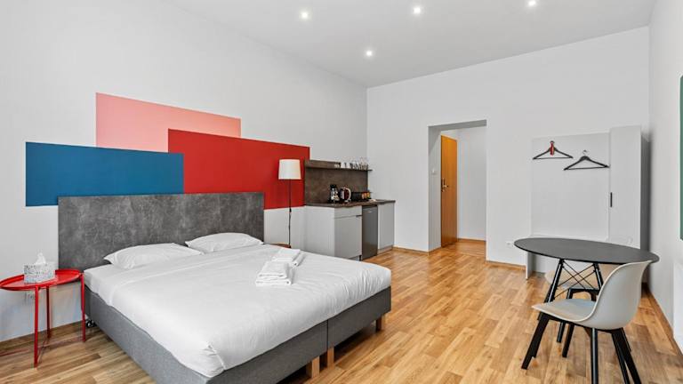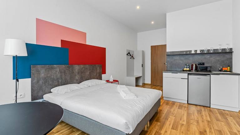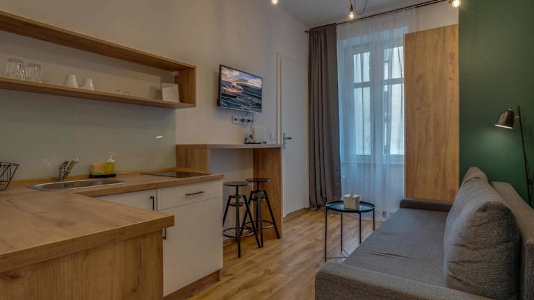 Die Wohneinheiten verfügen über eine voll ausgestattete Küchenzeile mit Kühlschrank, Herdplatte, Wasserkocher sowie Esstisch. Zudem sind ein Flachbild-TV mit Kabelkanälen, ein eigenes Badezimmer mit Dusche, kostenlosen Pflegeprodukten und Haartrockner vorhanden.