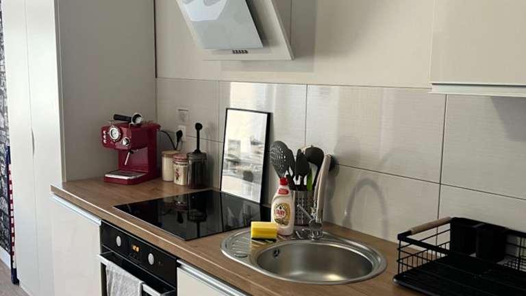 Die Ferienwohnung verfügt über insgesamt zwei Schlafzimmer sowie ein Wohnzimmer. Zur Ausstattung gehören eine vollausgestattete Küche mit Kühlschrank und Kaffeemaschine sowie ein Badezimmer mit Dusche und Haartrockner. Handtücher und Bettwäsche werden bereitgestellt.